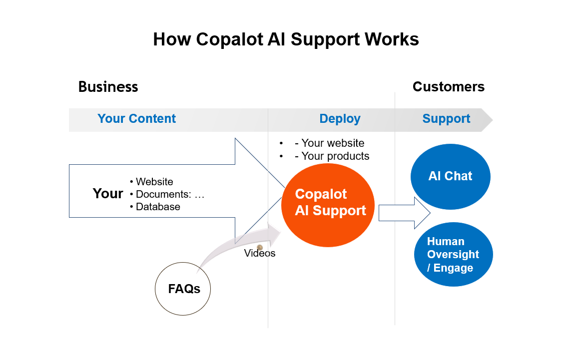 - Copalot can enhance customer service while significantly reducing your customer service costs. One AI video FAQ is worth 10 phone calls.